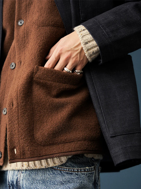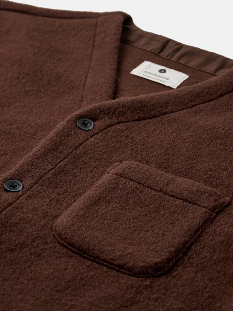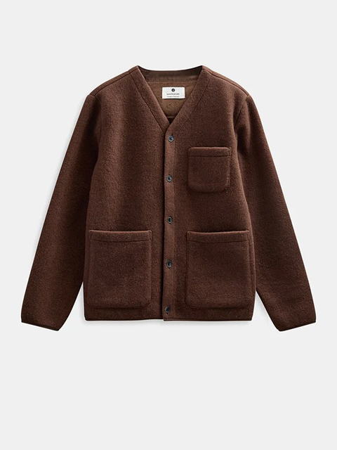 Cardigan in lana cotta da indossare come overshirt.