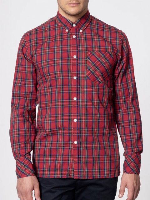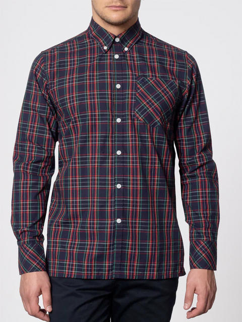 Camicia tartan a maniche lunghe button down con taschino sul petto.