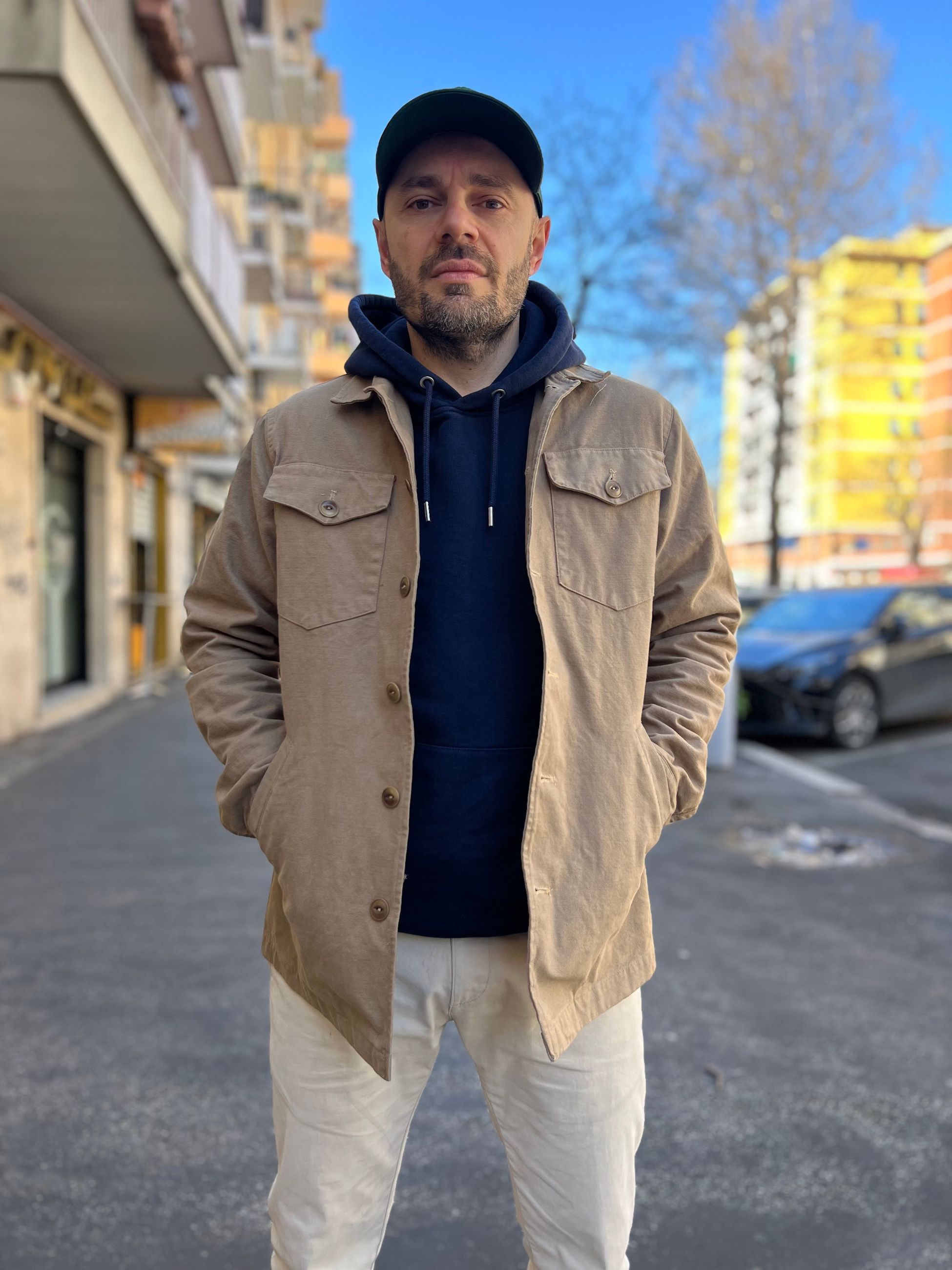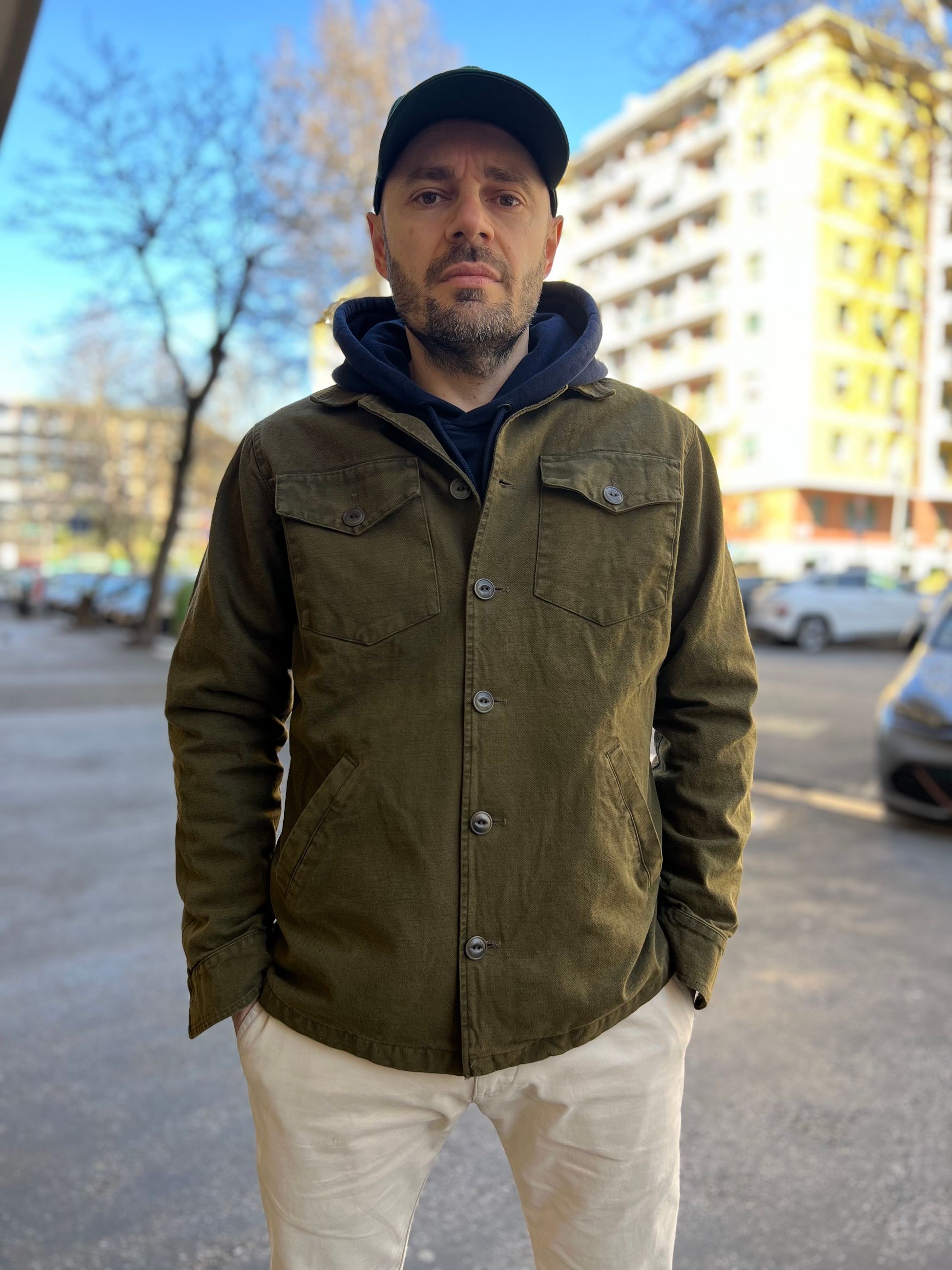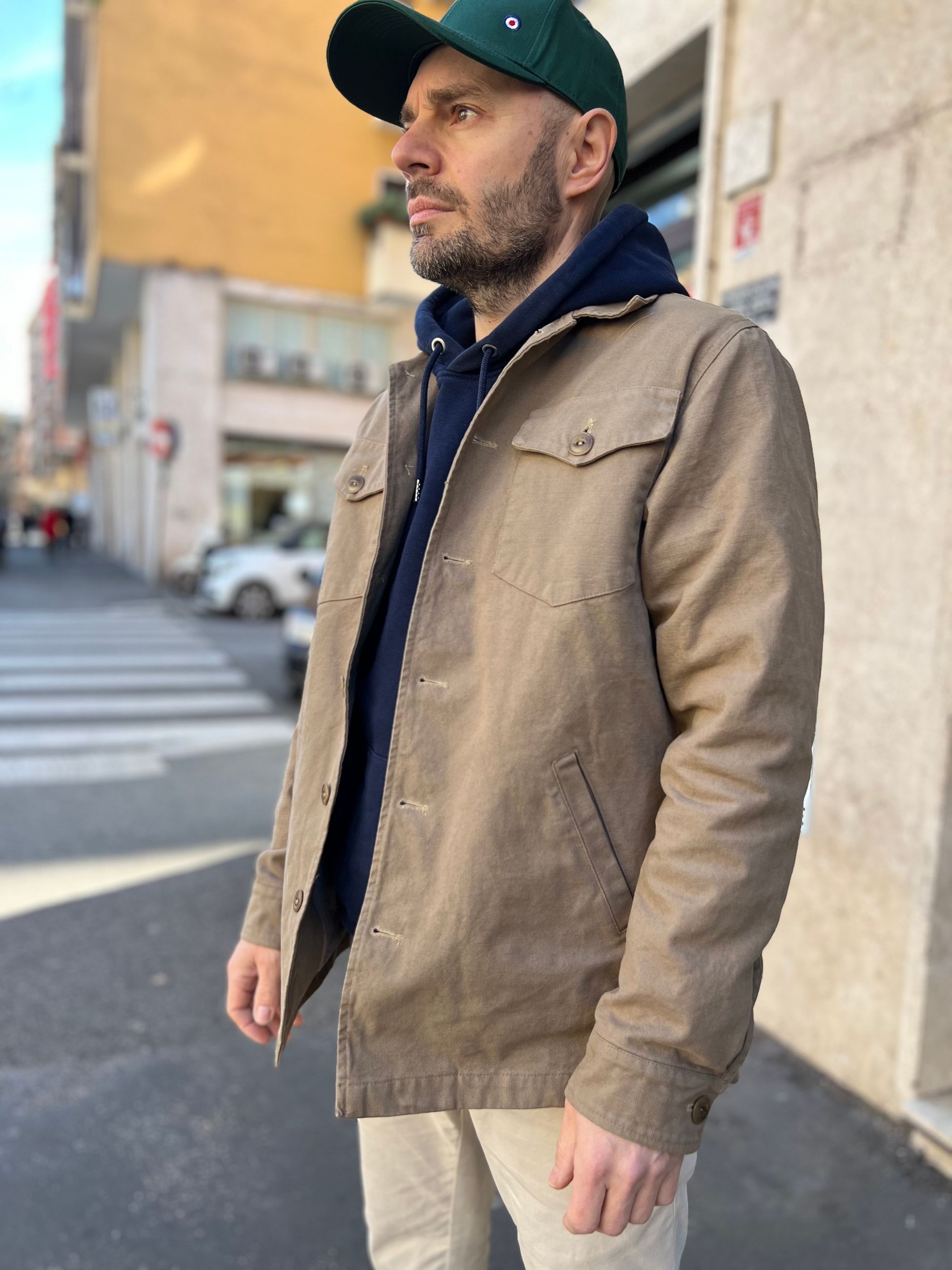 Giacca in stile militare in canvas foderata internamente in cotone.