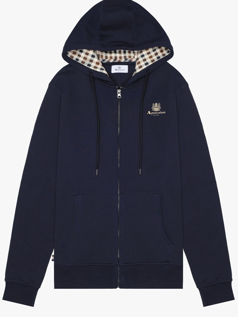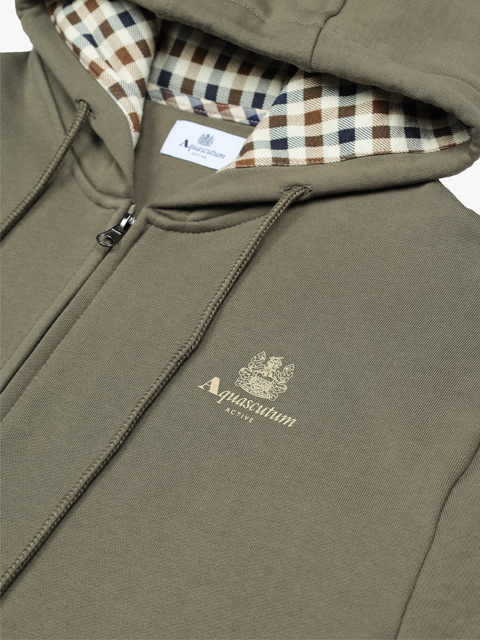 Un capo iconico del guardaroba Aquascutum Active. Questa felpa full zip è realizzata in cotone compatto non garzato per garantire comfort strutturato. Il cappuccio è foderato in cotone con l’inconfondibile motivo Club Check, mentre sul petto è stampato il logo Aquascutum Active accompagnato dallo storico Crest. Completano il capo una zip YKK a doppio cursore e finiture in costina tono su tono.