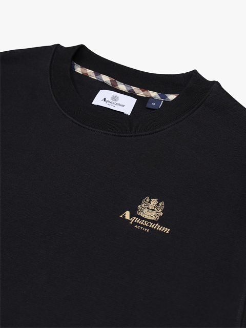 Un capo iconico del guardaroba Aquascutum Active. Questa felpa girocollo è realizzata in cotone compatto non garzato per garantire comfort strutturato. Sul petto è stampato il logo Aquascutum Active accompagnato dallo storico Crest.