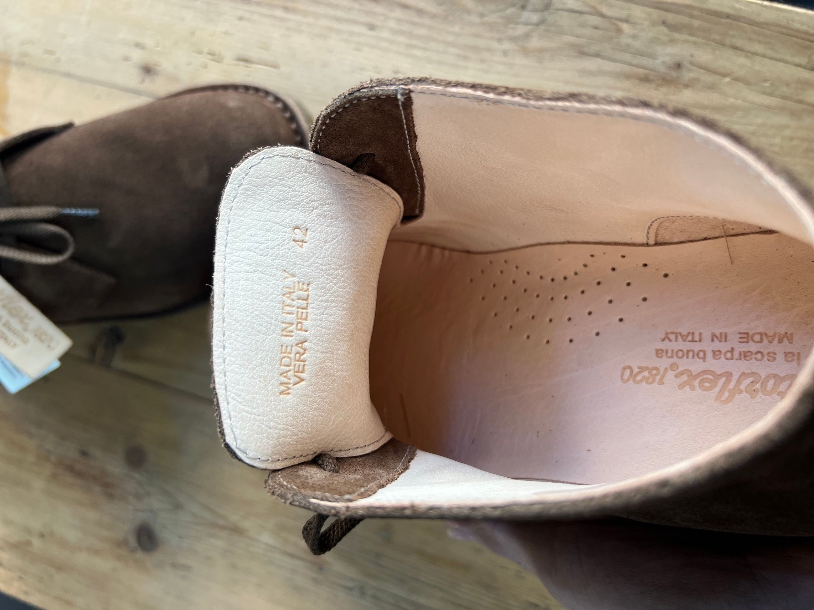 Descrizione: ASTORFLEX Modello Greenflex 100% Suede Leather Suola esterna 100% Natural Crepe Suola interna in memory foam Handmade in Italy since 1820