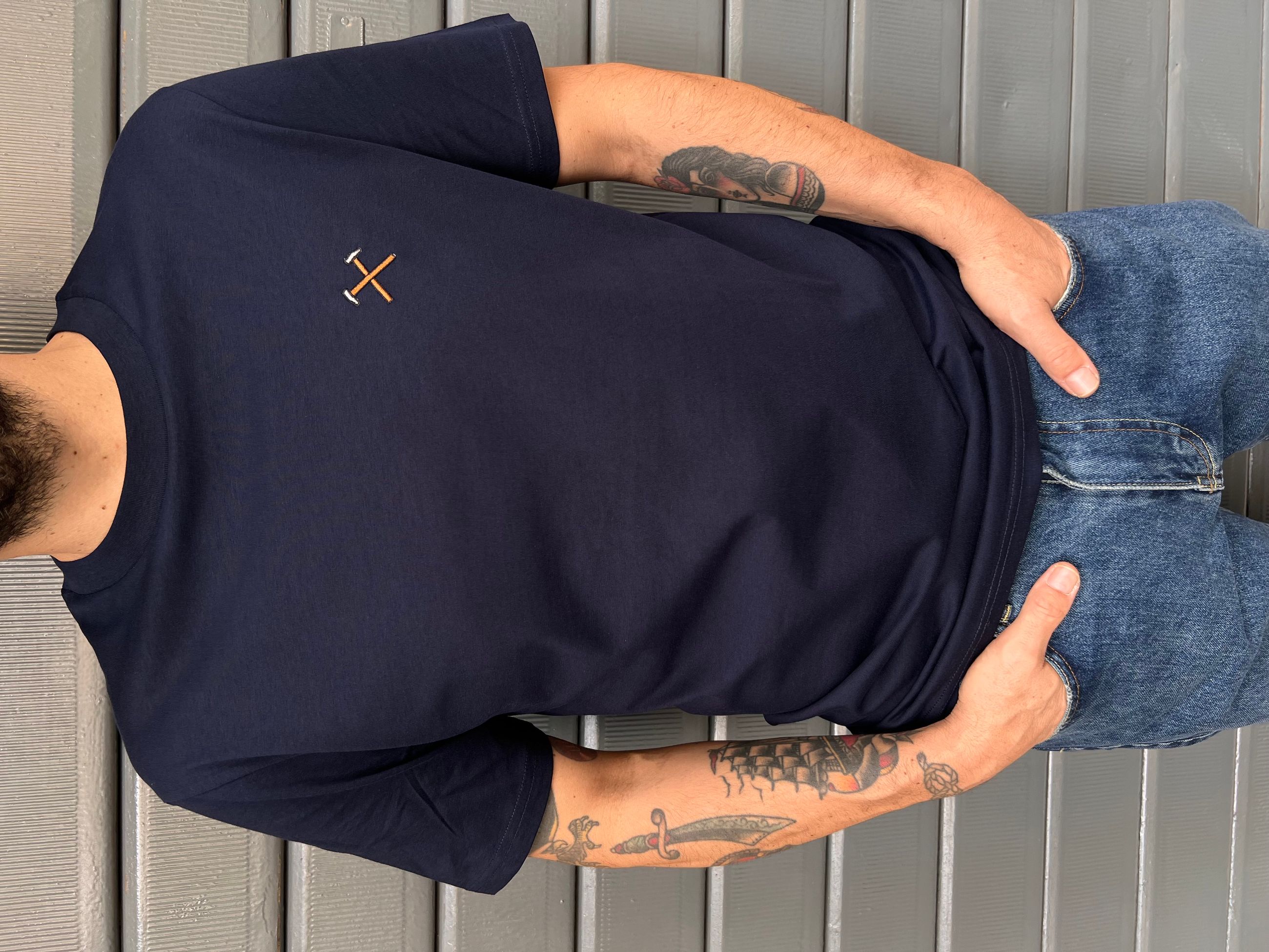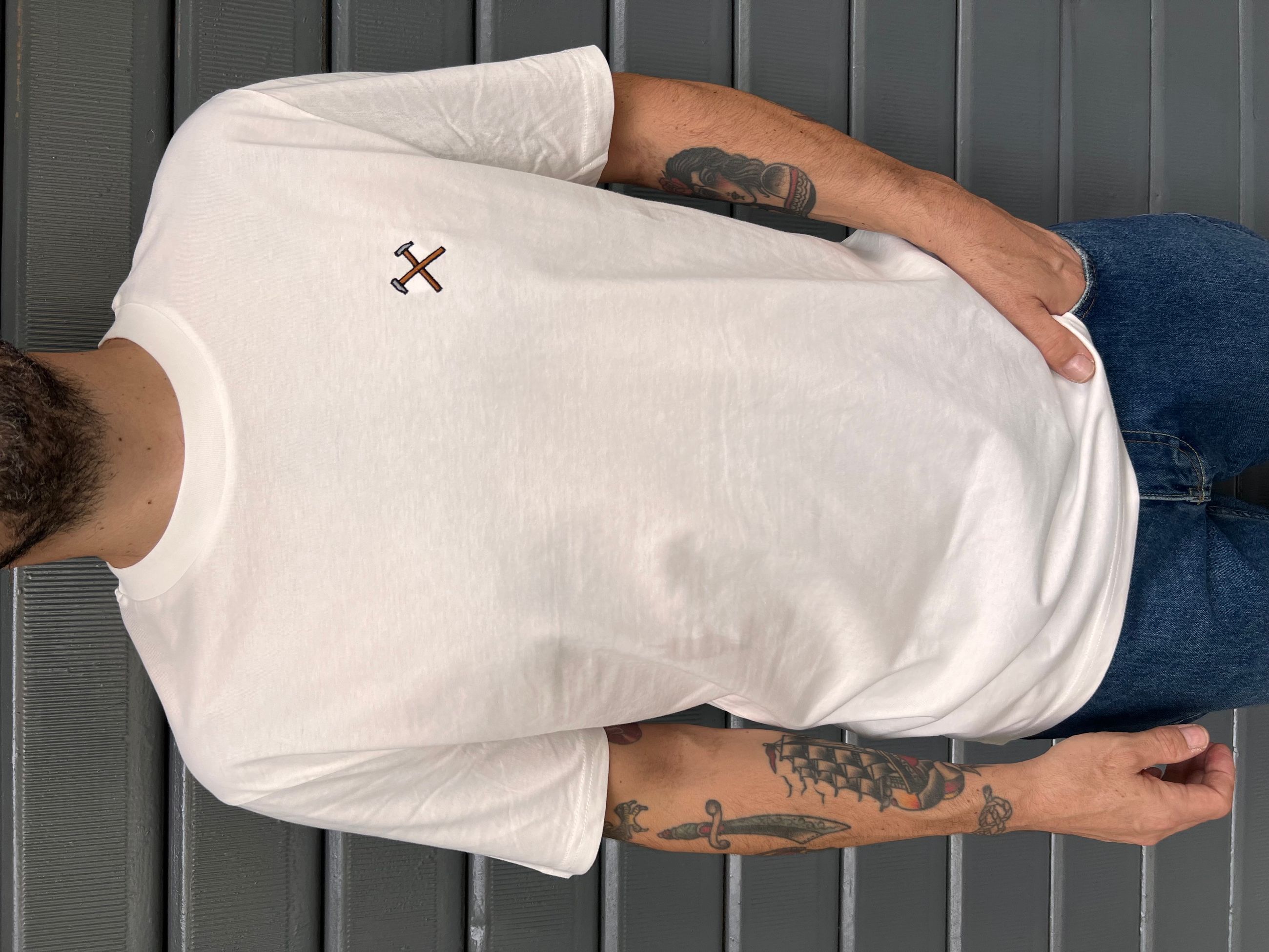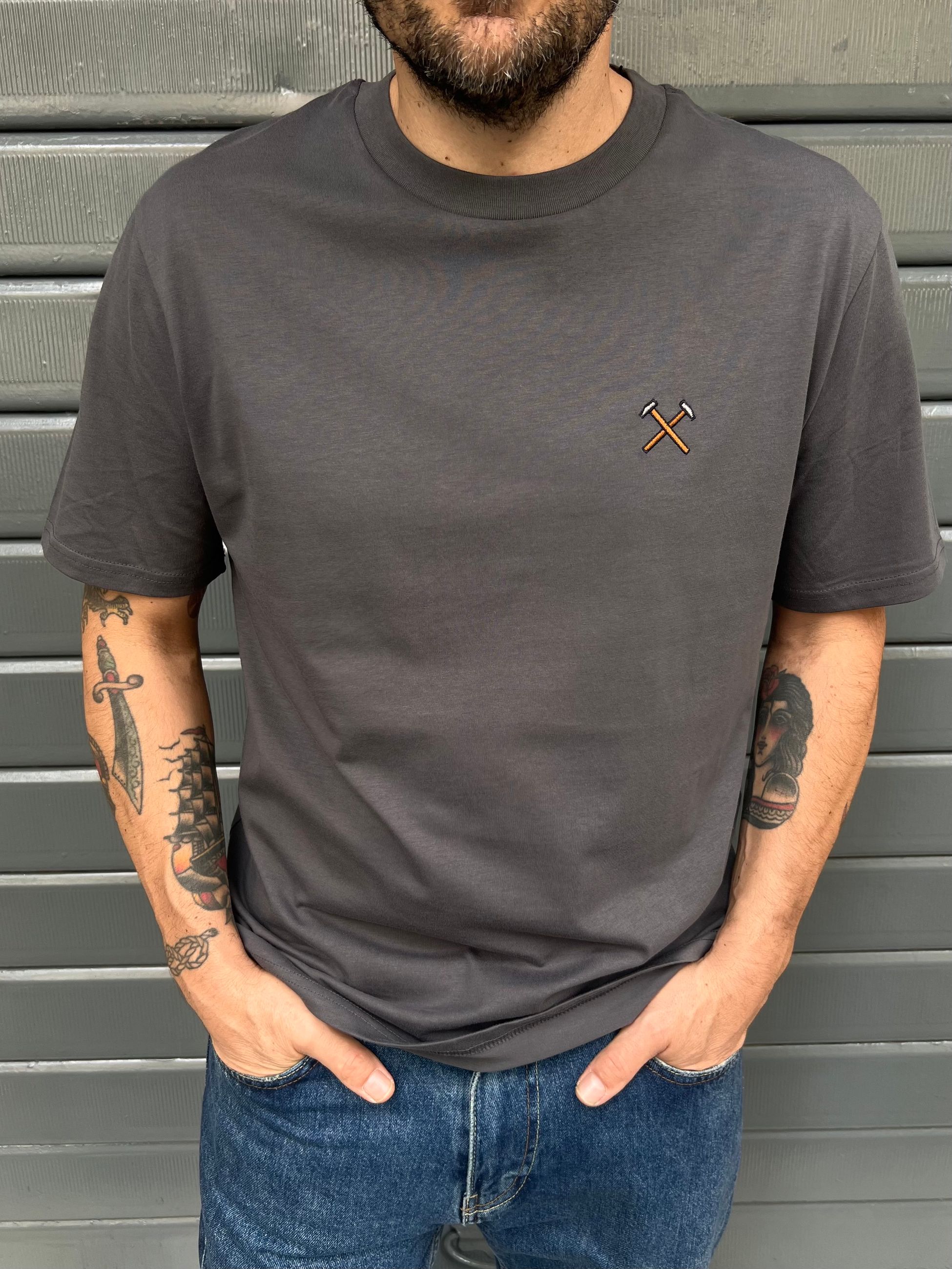 T-shirt a maniche corte con logo hammers ricamato a contrasto sul petto lato cuore.