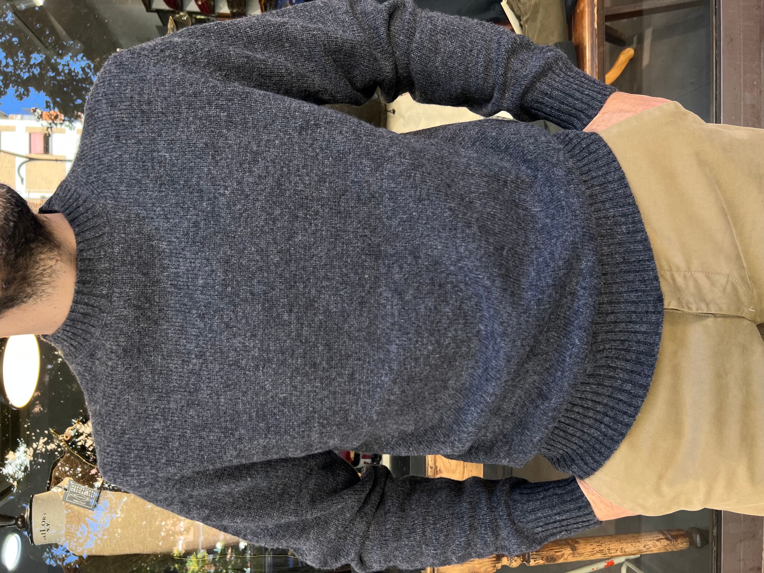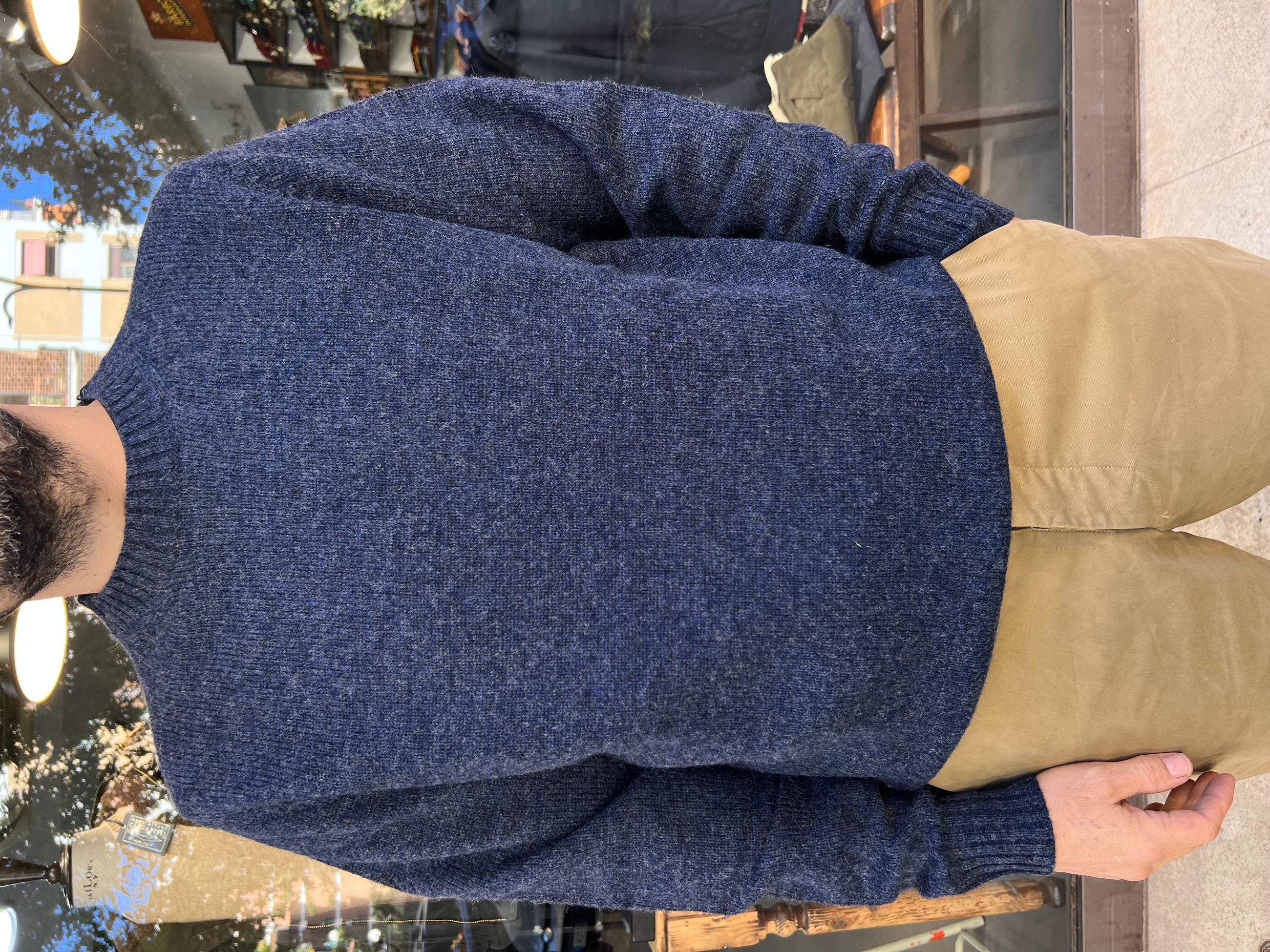 Descrizione: LONDON CALLING Maglione girocollo in lana Shetland, tutte le colorazioni hanno un effetto melange, tranne il nero, il che rende questa lana unica e affascinante. 100% Lana Vestibilita' Regolare