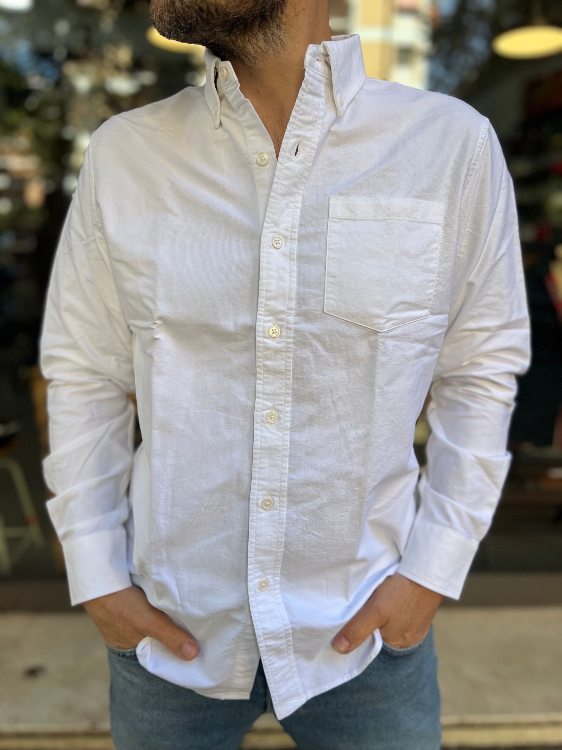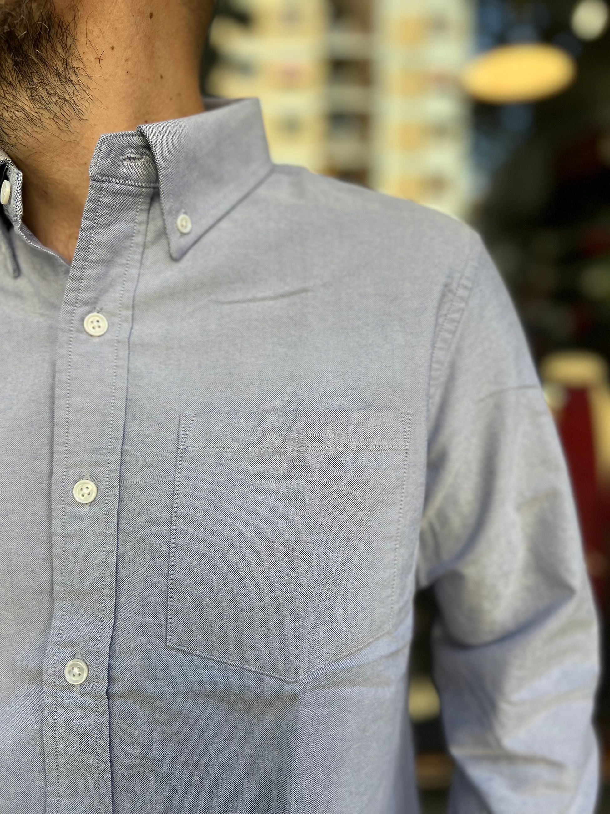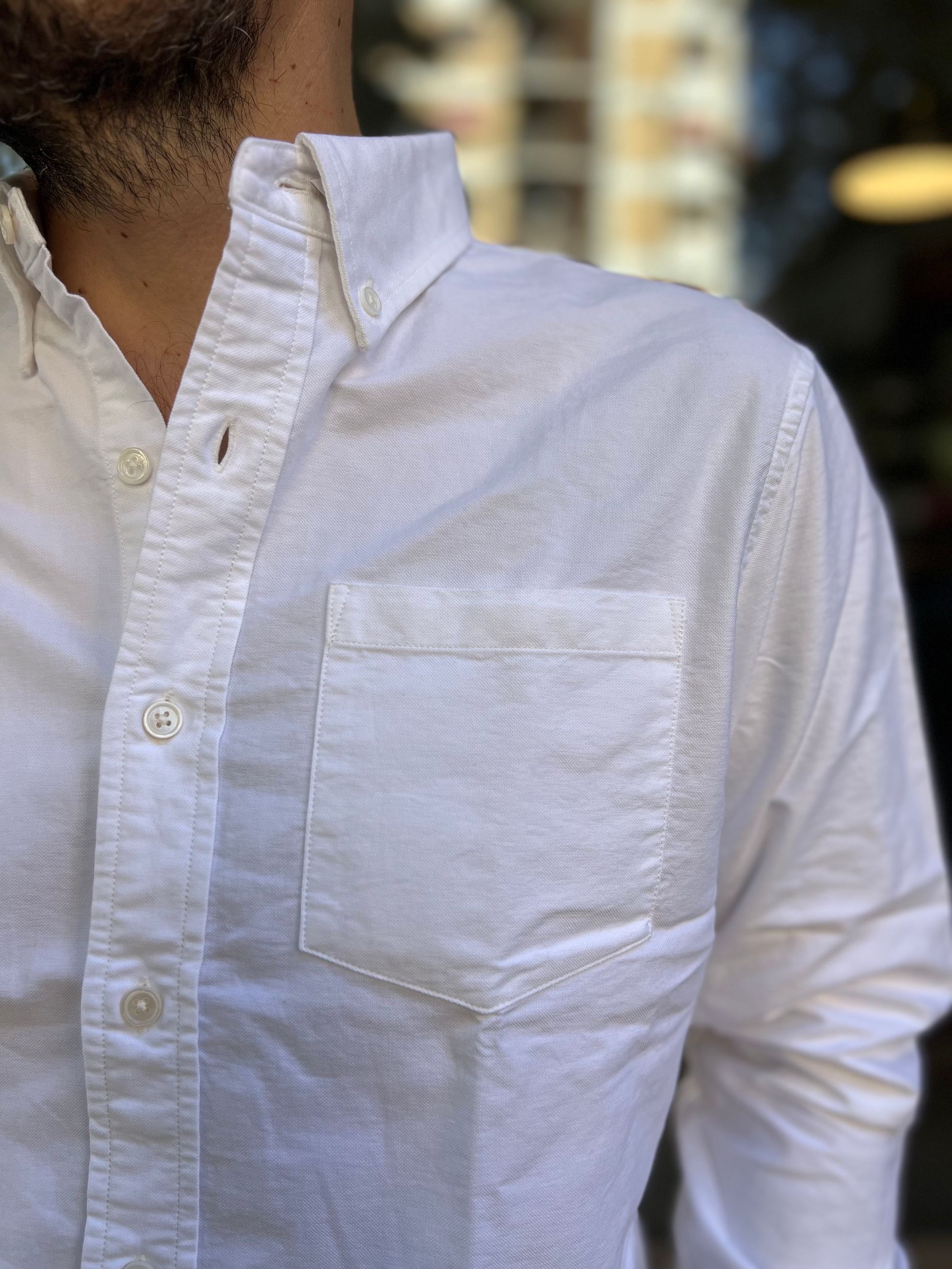 Camicia Oxford Button Down tinta unita a maniche lunghe e taschino lato cuore.