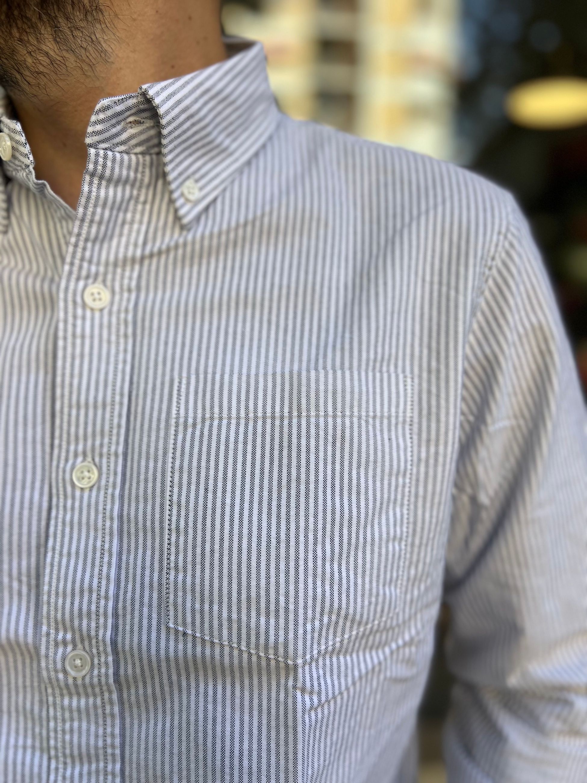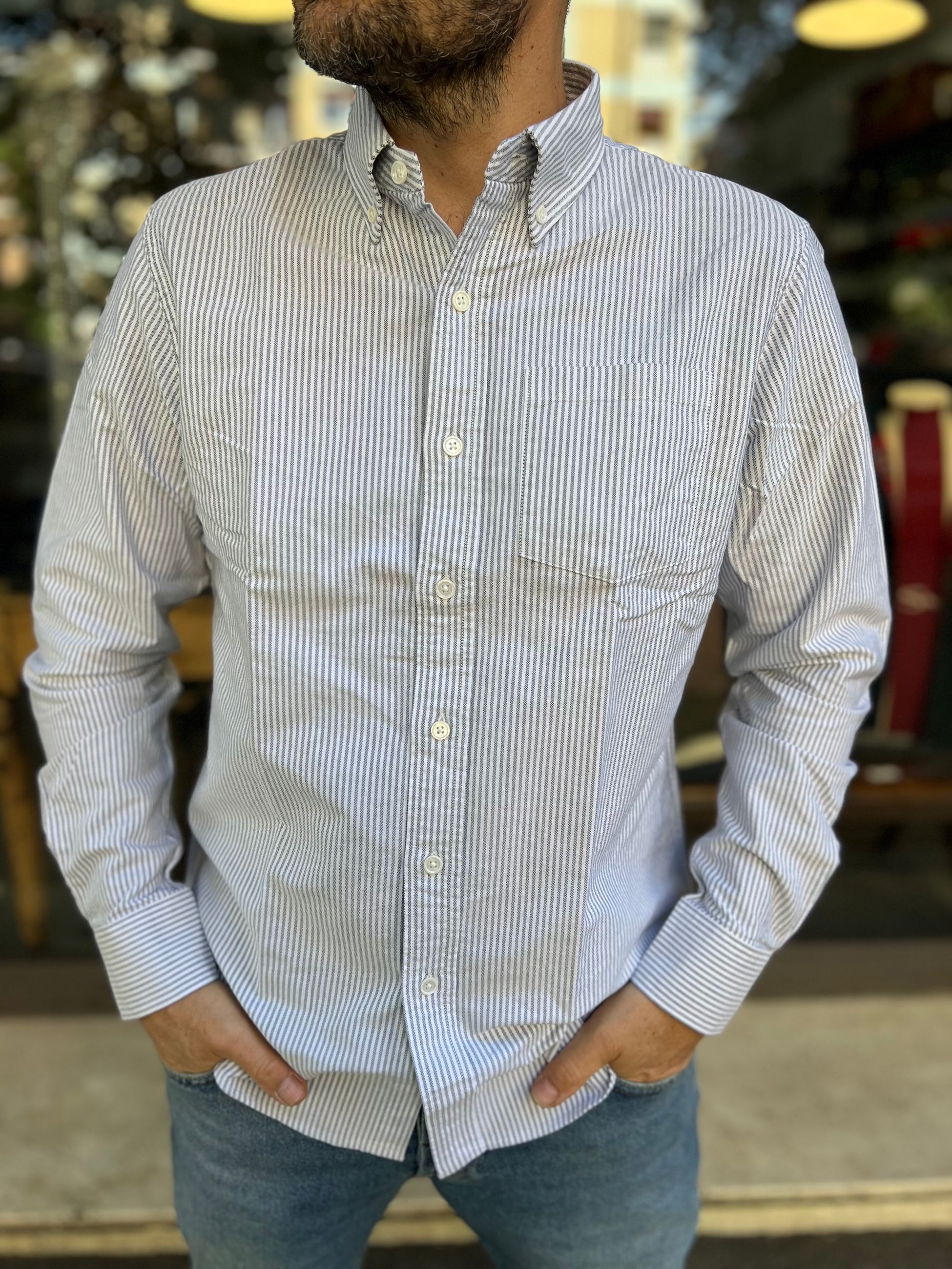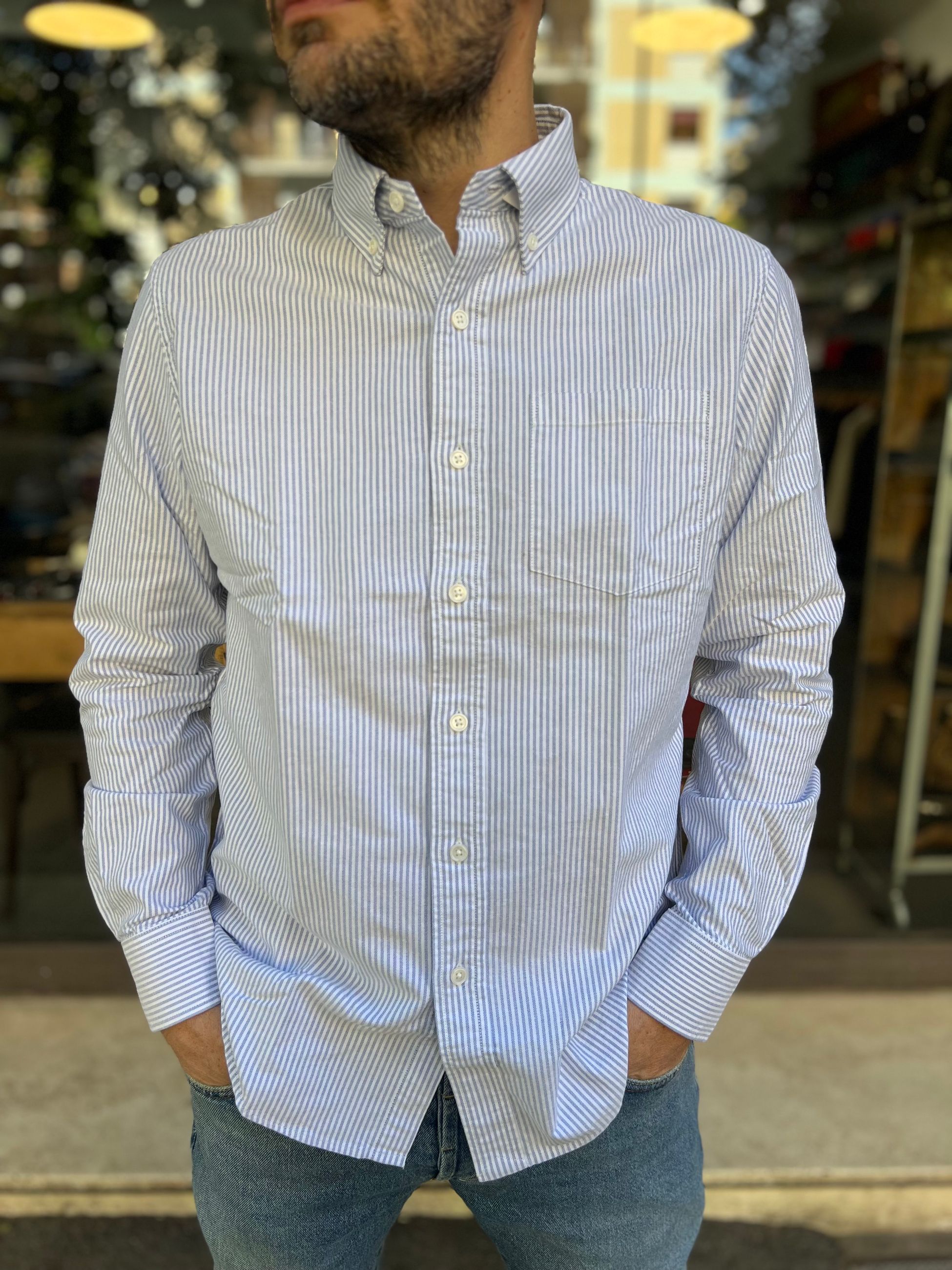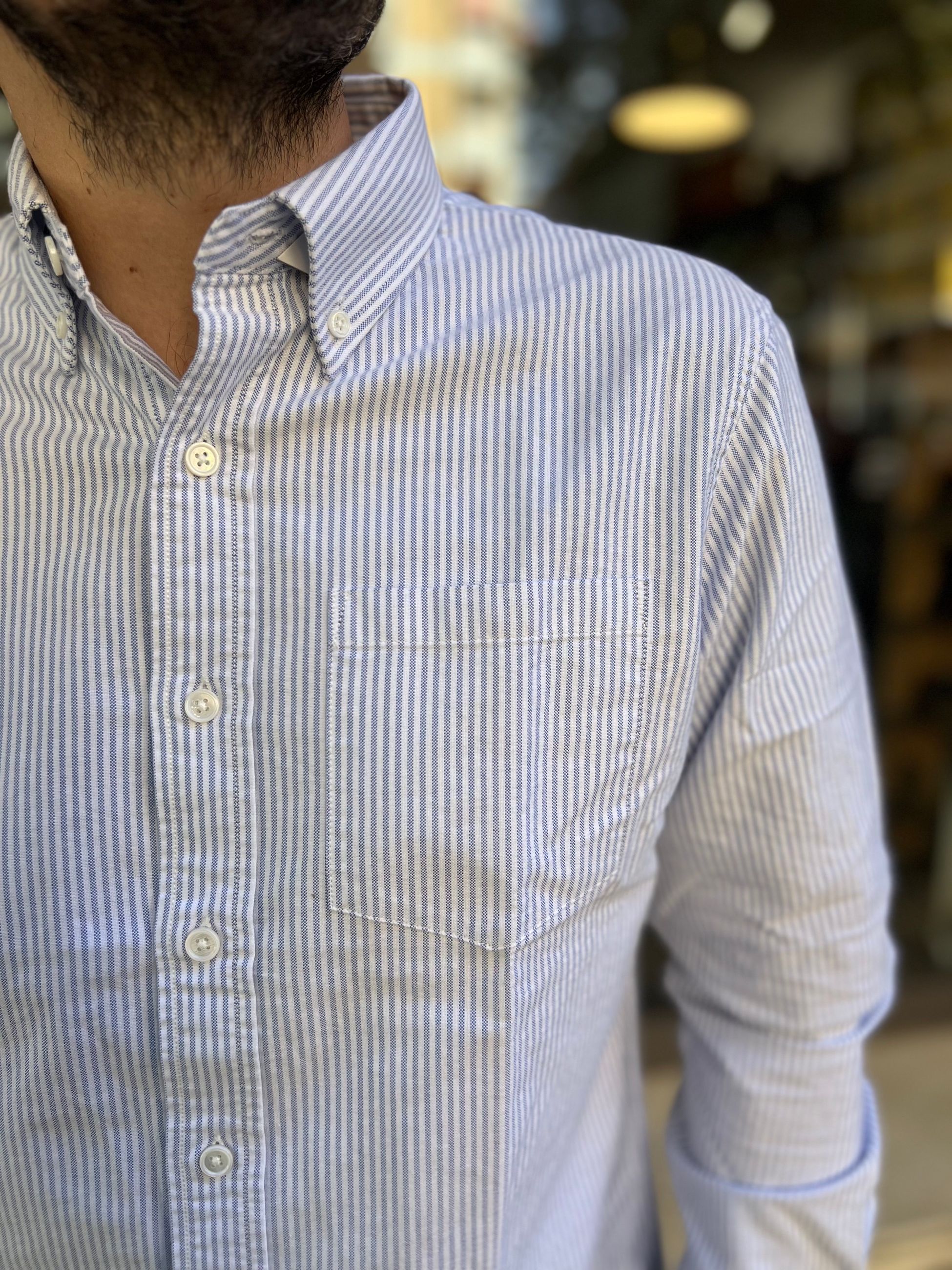 Camicia Oxford Button Down Bacchettata a maniche lunghe e taschino lato cuore.