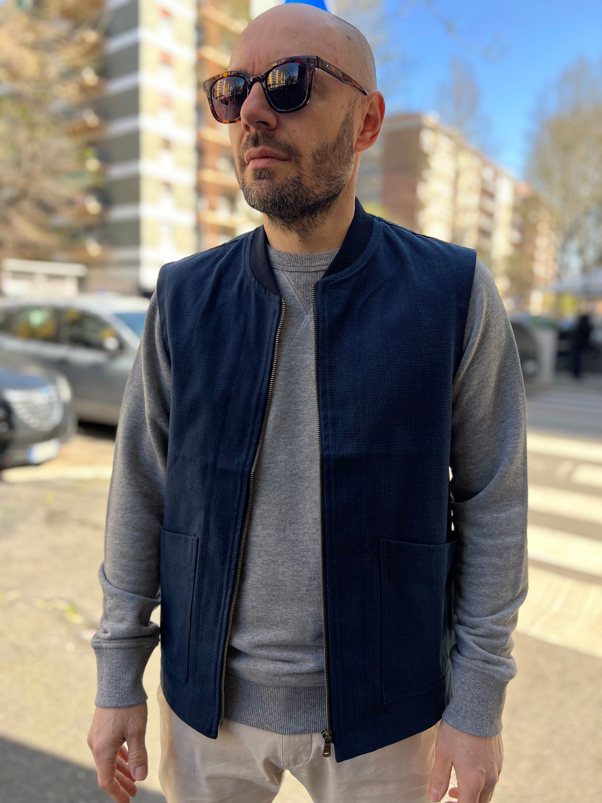 Vest JOHN primaverile in canvas semirigido, doppia tasca sul davanti e chiusura con zip .